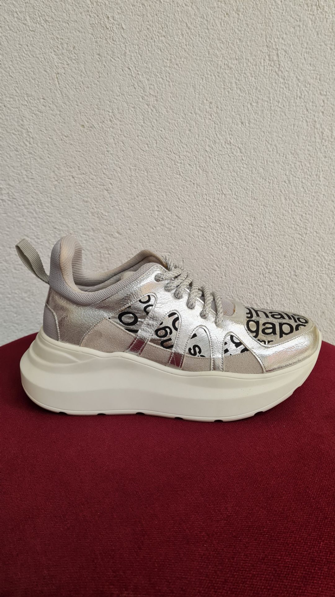 401 Yazı Detaylı Rahat Kadın Spor Ayakkabı GRİ GÜMÜŞ