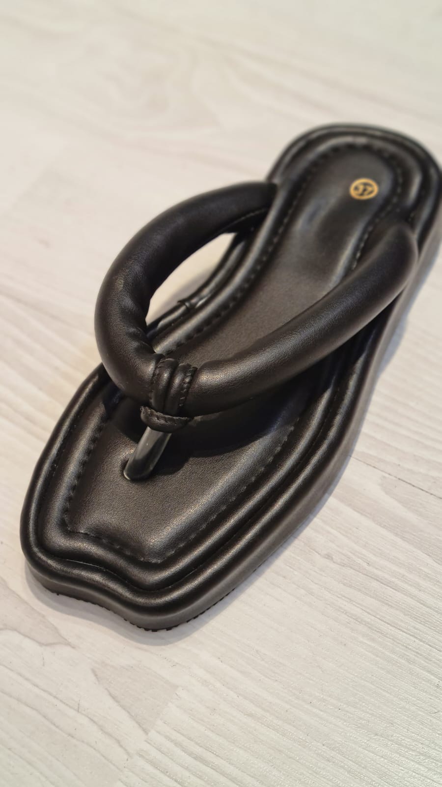 827 Parmak Arası Şişme Pofuduk Taban Kadın Terlik SİYAH DERİ