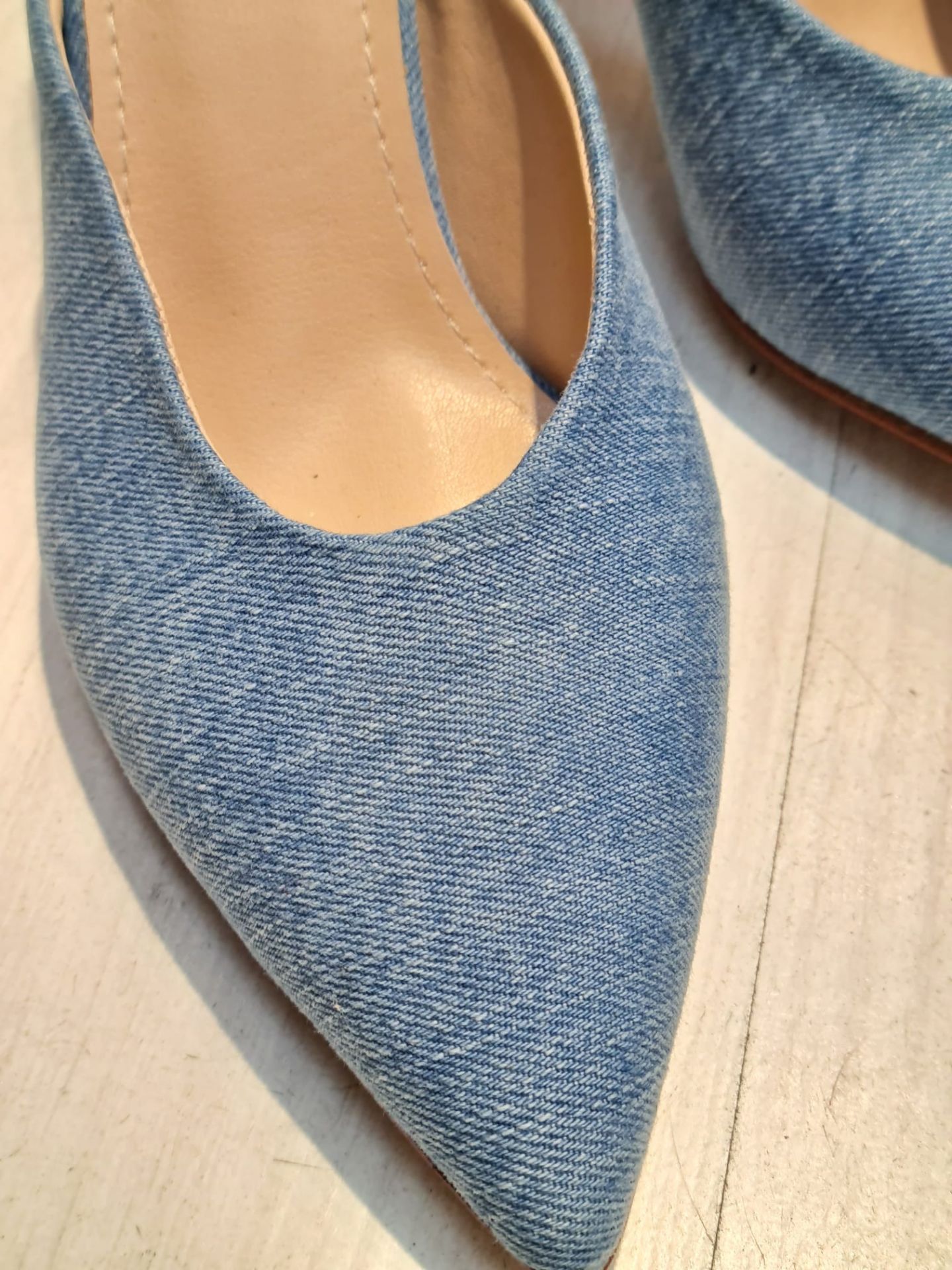 035 Ince Topuk Günlük Rahat Kadın Terlik Ayakkabı KOT BUZ MAVİ