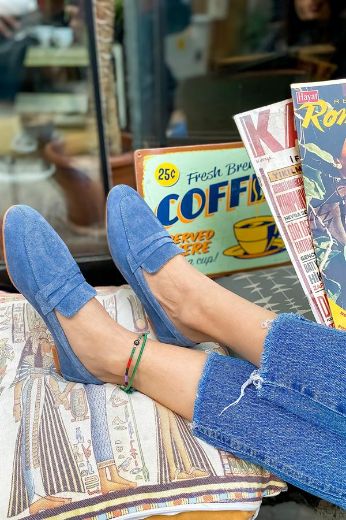 1003 Hakiki Deri Süet Günlük Kadın Loafer Babet İNDİGO MAVİ