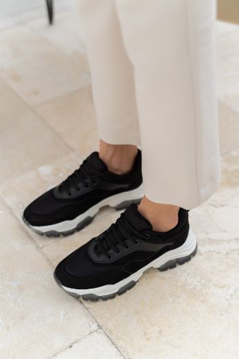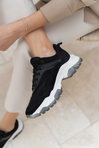 229 Günlük Bağcıklı Kadın Sneakers Spor Ayakkabı SİYAH SÜET