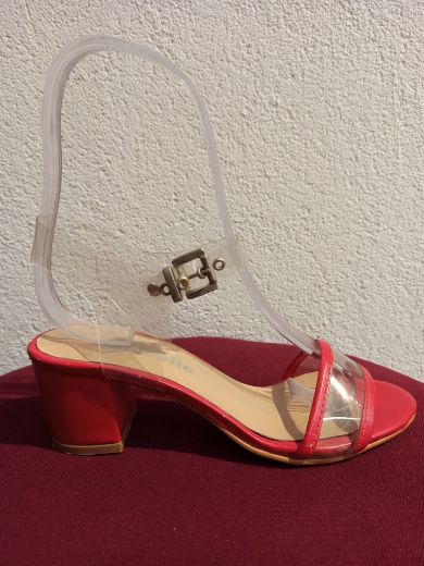 3301 Şeffaf Detay Alçak Topuklu Kadın Ayakkabı Kırmızı Deri