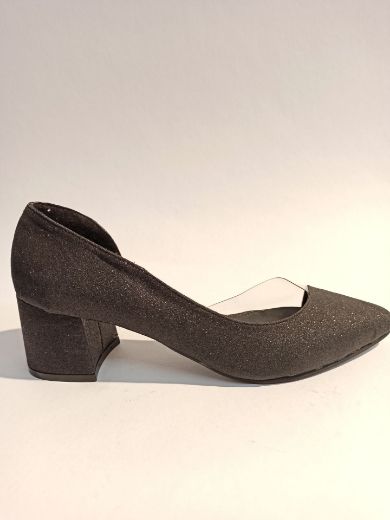 354 Şeffaf Yan Detay Kalın Topuk Kadın Ayakkabı SİYAH SİMLİ
