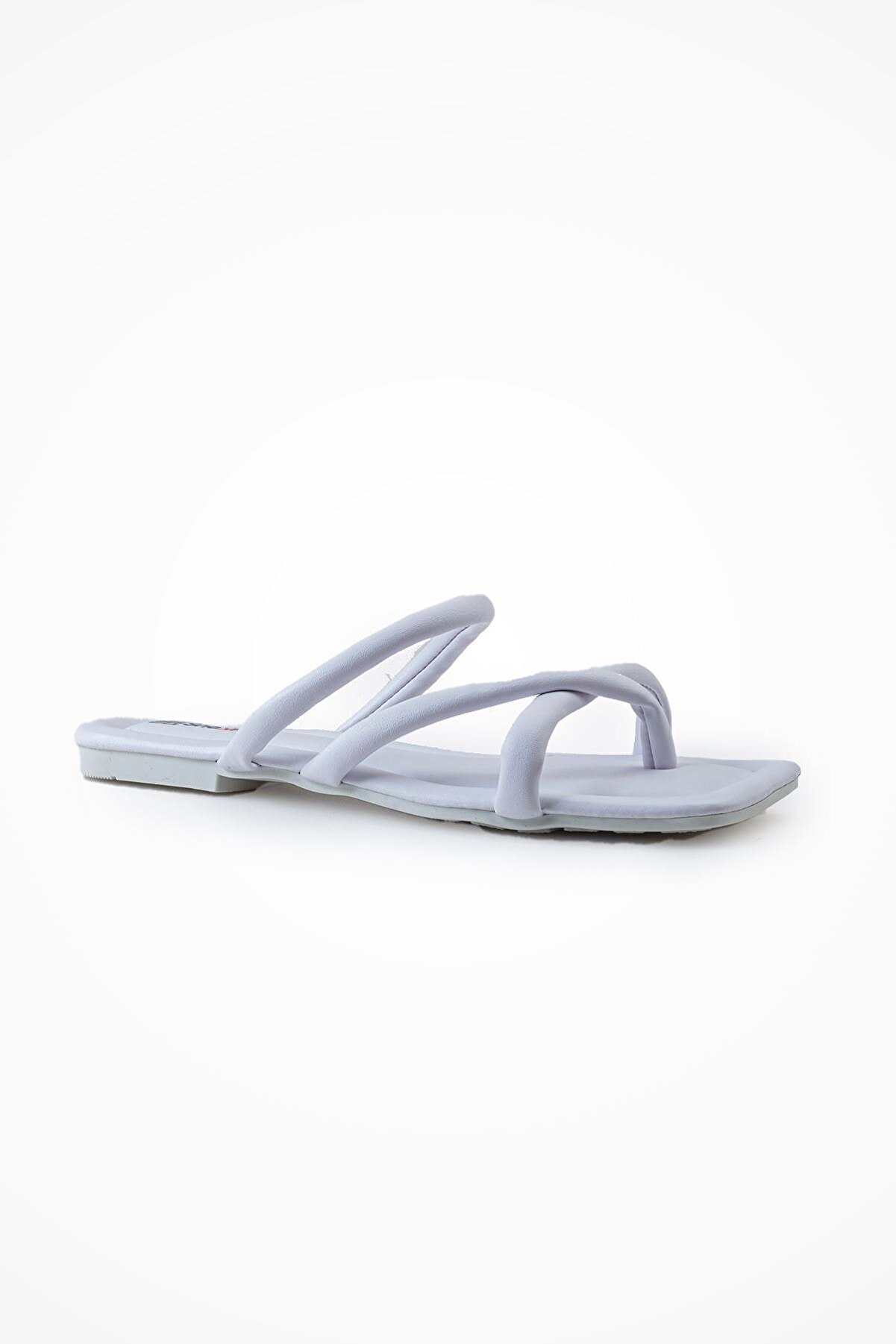 430 Şişme Bantlı 3 Şerit Günlük Rahat Kadın Terlik BEYAZ DERİ
