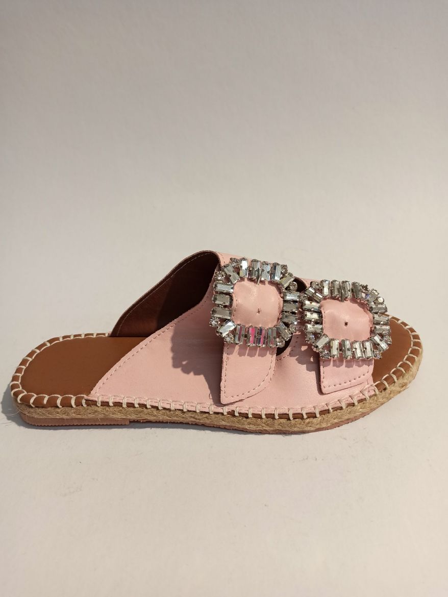 656-1 Çift Toka Gerçek Taşlı Kemerli Kadın Terlik Pembe