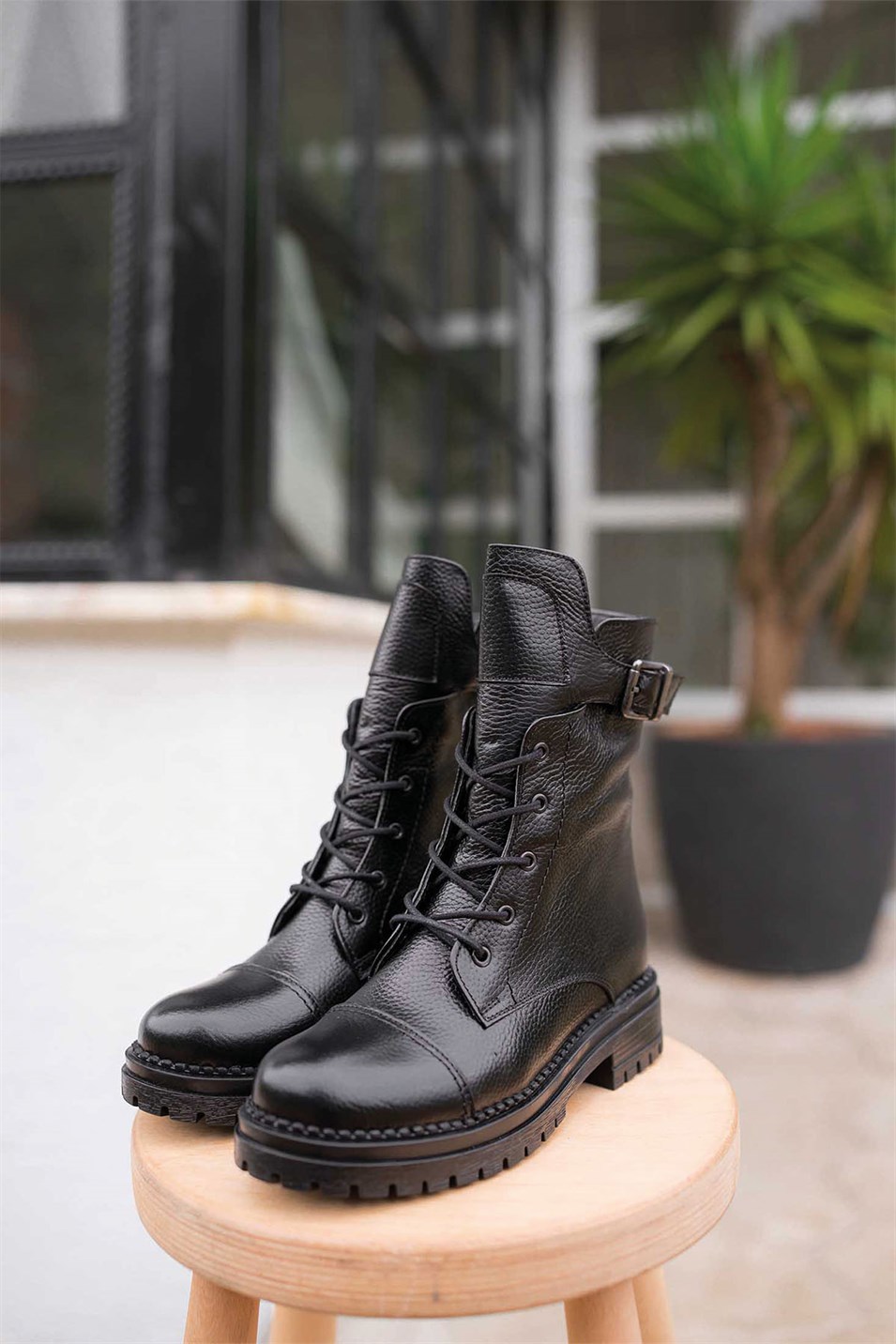 683 Tokalı Kadın Postal Hakiki Deri Postal Kışlık SİYAH DERİ