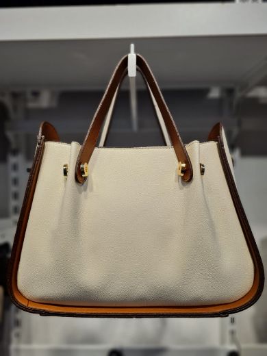 C007 Kadın Çanta Askılı Çanta Günlük Çanta Abiye Bej Deri
