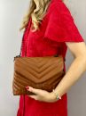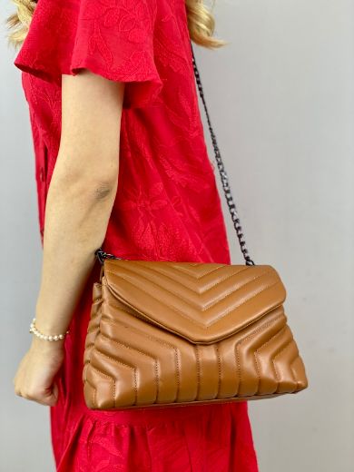 C025 Kapitoneli Çizgili Kadın Çanta Çapraz Çanta TABA DERİ