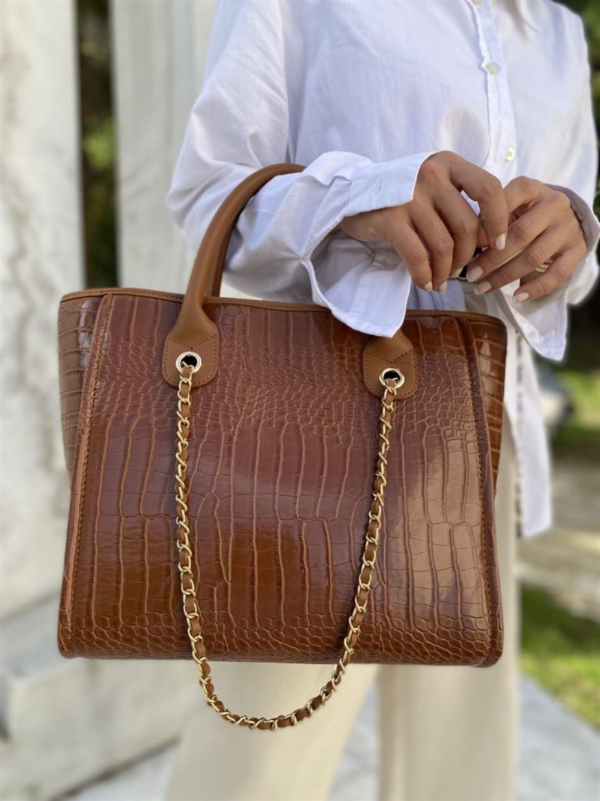 C043 Kadın Omuz Çanta Günlük Zincirli Çapraz Çanta TABA KROKO