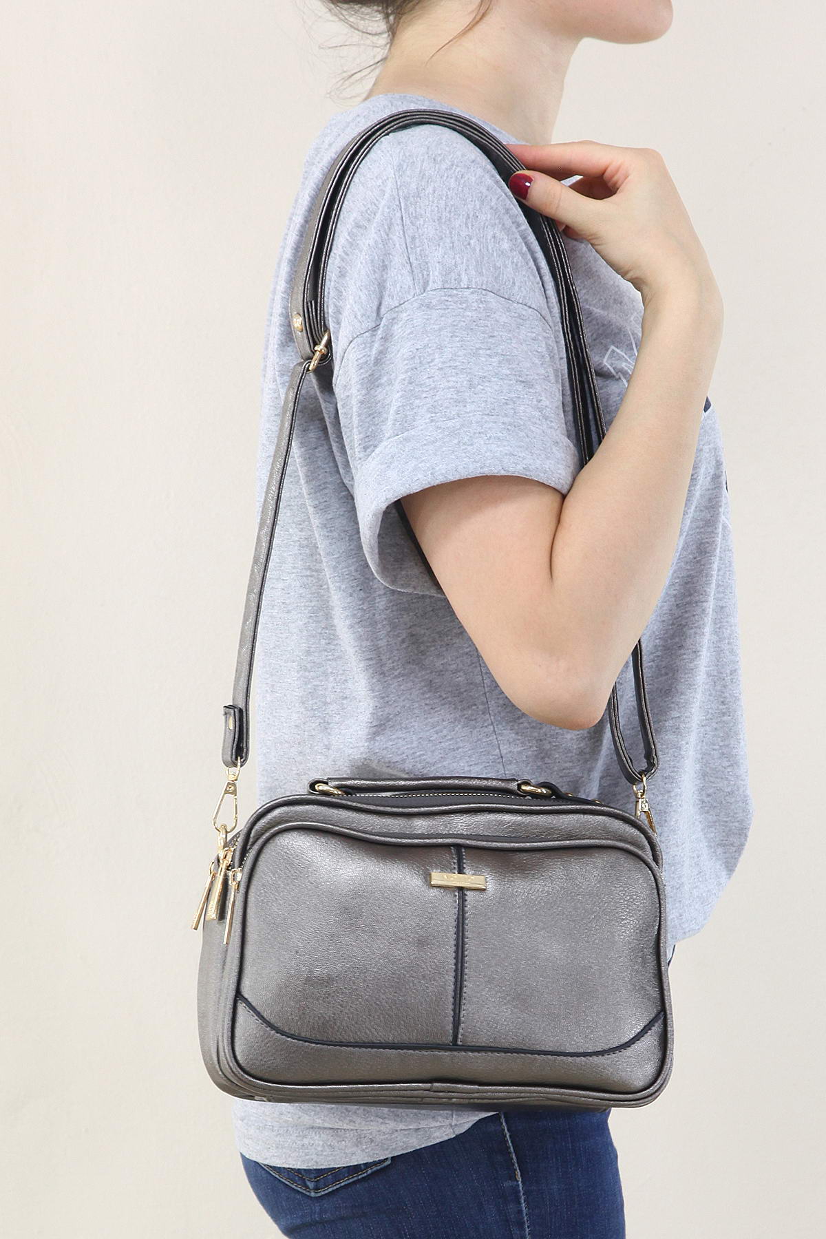 C068 Kadın Çanta Günlük Omuz Çanta Çapraz Elçanta Platin